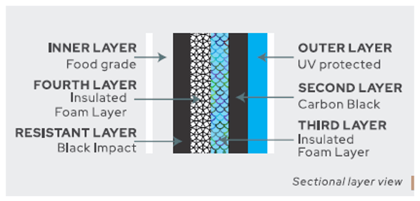 Inner Layer: Food-grade, bacteria-resistant, and algae-resistant material to ensure safe and hygenic water for consumtion.